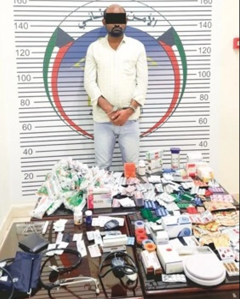 أنهى رجال مباحث ميدان حولي في دولة الكويت نشاط وافد من إحدى الجنسيات الآسيوية امتهن ممارسة مهنة الطب دون ترخيص وعدم حصوله أيضا على أي مؤهل له علاقة بمهنة التطبيب، وعثر داخل غرفته التي خصصها لاستقبال حالات مرضية لوافدين من نفس جنسيته على كمية كبيرة من الأدوية المتنوعة بعضها خاص بوزارة الصحة وأخرى...