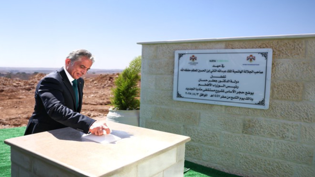 وضع رئيس الوزراء جعفر حسان، الأحد، حجر الأساس لمستشفى مأدبا الجديد إيذانا ببدء العمل على إنشائه وفق أعلى المواصفات.ووفق ما نشرت رئاسة الوزراء، فإنّ المستشفى سينجز بعد 3 سنوات، كأول مستشفى حكومي ينفذ بالشراكة مع القطاع الخاص؛ ليخدم المواطنين في محافظة مأدبا والمناطق المجاورة لها.ويتكون المستشفى من...