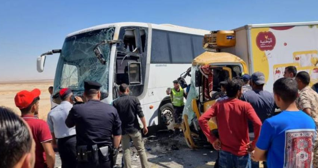 وفاتان و7 إصابات بتصادم مركبة وحافلة على الطريق الصحراوي في معان نبأ الأردن -وقع حادث تصادم الأحد بين مركبة وحافلة على الطريق الصحراوي في محافظة معان، أسفر عن وفاة شخصين وإصابة سبعة آخرين.وأكد مصدر أنه تم نقل المصابين إلى المستشفى لتلقي العلاج، فيما باشرت الأجهزة الأمنية والجهات المختصة التحقيق...