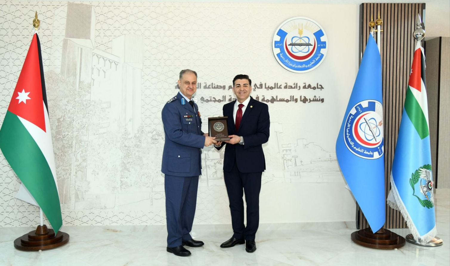 استقبل رئيس جامعة العلوم والتكنولوجيا الأستاذ الدكتور خالد السالم، قائد سلاح الجو الملكي الأردني، العميد الركن الطيار محمد فتحي حياصات، بحضور عدد من نواب رئيس الجامعة وأعضاء الهيئة التدريسية.وجاءت الزيارة في إطار تعزيز التعاون المشترك بين الجامعة وسلاح الجو الملكي في مجالات البحث العلمي، والتطوير...