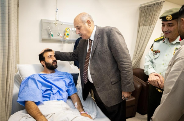 بتوجيهات ملكية سامية، قام رئيس الديوان الملكي الهاشمي يوسف حسن العيسوي، اليوم الأربعاء، بزيارة المصابين من منتسبي الأجهزة الأمنيّة الذين يتلقّون العلاج، في الخدمات الطبية الملكية، إثر المداهمة الأمنيّة التي جرت في لواء الرمثا مساء الثلاثاء.وخلال الزيارة، نقل العيسوي للمصابين تحيات جلالة الملك...