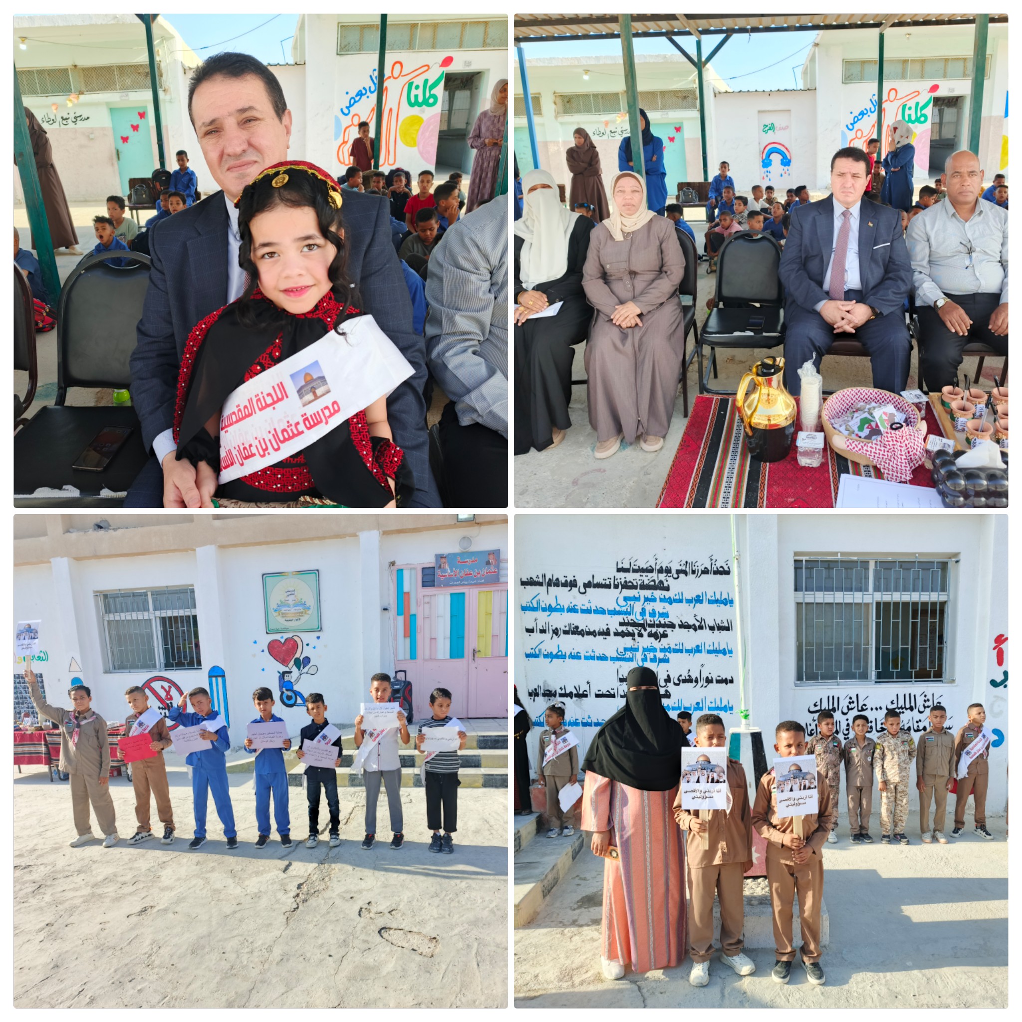 رعى مدير التربية والتعليم للواء الأغوار الجنوبية الأستاذ عوده الضرابعة ويرافقه رئيس قسم المالية الأستاذ أحمد النواصره والمشرفة التربوية كفاح الجعارات فعالية أنا أردني والأقصى مسؤوليتي في مدرسة عثمان بن عفان الأساسية المختلطة.بدأت الفعالية بالسلام الملكي ، وسماع النشيد الوطني ، وتلاوة آيات عطرة من...