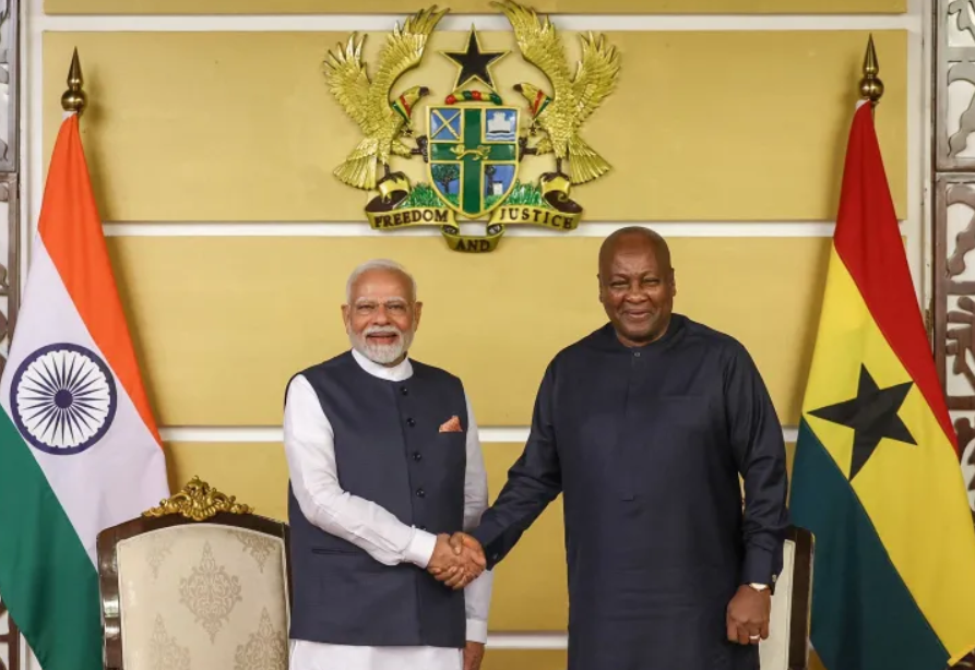 زار رئيس الوزراء الهندي ناريندرا مودي غانا في زيارة رسمية، هي الأولى من نوعها منذ أكثر من ثلاثين عاما، في جولة دبلوماسية لخمس دول.ومُنح في هذه الزيارة، رئيس الوزراء الهندي أعلى وسام مدني في غانا، من الرئيس الغاني جون دراماني ماهاما، وهو وسام نجم غانا من رتبة ضابط، تقديرا لـقيادته العالمية المؤثرة...
