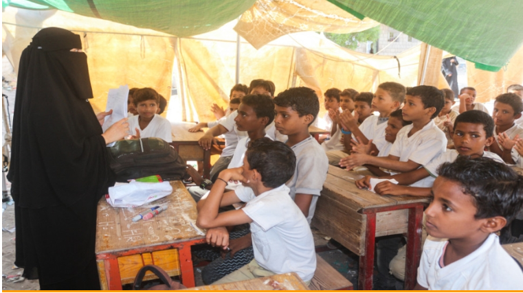 في خيمة تغطيها أقمشة مهترئة في فناء مدرسة حكومية في لحج قرب عدن، تشرح المدرّسة اليمنية سعاد صالح قواعد اللغة العربية لأكثر من 100 تلميذ اكتظ بهم المكان الضيق الخانق، غالبيتهم دون زيّ أو كُتب مدرسية.ورغم الظروف القاسية، يُعد هؤلاء التلاميذ في هذه المدينة الجنوبية الخاضعة لسيطرة الحكومة اليمنية...
