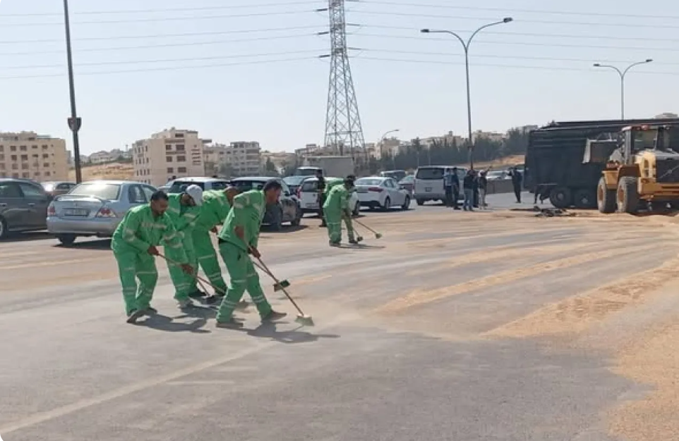 قامت آليات وكوادر أمانة عمّان الكبرى وبالتعاون مع الجهات المختصة بالتعامل الفوري مع انسكاب حمولة شاحنة إثر انقلابها على طريق المطار (بعد جسر مرج الحمام باتجاه جسر الأمير حسين)، لضمان السلامة العامة وإعادة فتح الطريق أمام الحركة المرورية.