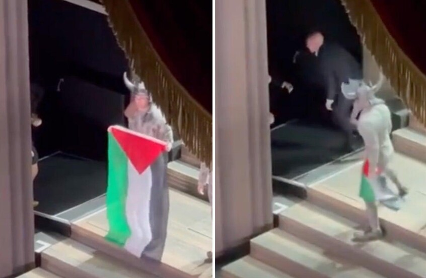 قام فنان برفع علم فلسطين خلال التحية الختامية لأوبرا Il Trovatore في دار الأوبرا الملكية في بريطانيا، حيث سارع الموظفون إلى محاولة انتزاع العلم منه.فشلوا في انتزاعه منه.. فنان يرفع علم فلسطين على مسرح دار الأوبرا الملكية في بريطانيا (فيديو)وفي مقطع فيديو نشر على الإنترنت، ظهر المؤدي وهو يقاوم...