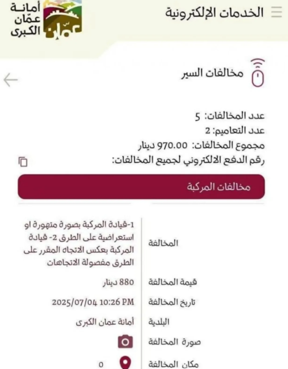 أوضح مصدر في إدارة السير بمديرية الأمن العام، اليوم السبت، حقيقة صورة المخالفة المتداولة لإحدى المركبات وقيمتها 880 دينارا.وتظهر صورة المخالفة أن السائق ارتكب مخالفتي قيادة المركبة بصورة متهورة او استعراضية، وقيادة المركبة بعكس الاتجاه المقرر على الطرق مفصولة الاتجاهات.وقال المصدر، إن قيمة مخالفة...