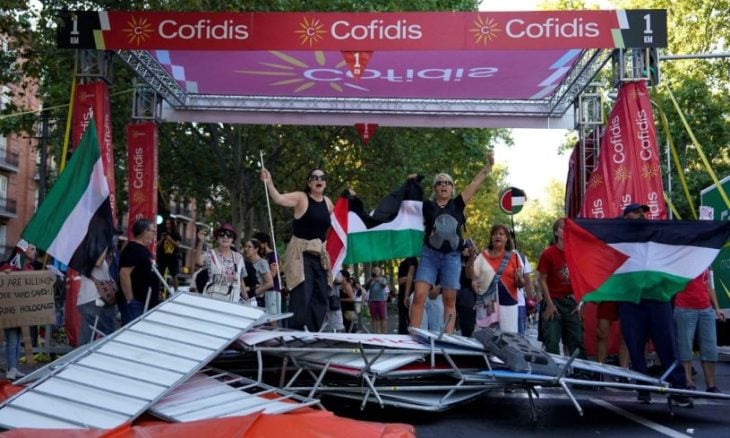 نزل إلى شوارع مدريد الأحد أكثر من مئة ألف متظاهر مؤيد للفلسطينيين في المرحلة الأخيرة لطواف إسبانيا للدراجات الهوائية، في ذروة تحركهم الذي بوشر قبل ثلاثة أسابيع احتجاجا على مشاركة فريق إسرائيلي، وانتهى بالدخان والغاز المسيل للدموع.واقتحم متظاهرون يلوّحون بالعلم الفلسطيني ويرددون شعارات مؤيدة لغزة،...