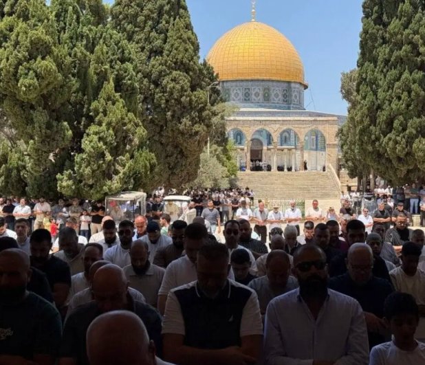 أدى عشرات آلاف الفلسطينيين صلاة الجمعة في المسجد الأقصى، رغم العراقيل التي فرضتها قوات العدو الاسرائيلي في محيط البلدة القديمة والمسجد.وذكرت دائرة الأوقاف الاسلامية بالقدس، أن 40 ألف مصل أدوا صلاة الجمعة في المسجد الأقصى، والغائب على أرواح شهداء قطاع غزة والضفة الغربية.وفرضت قوات العدو عراقيل على...