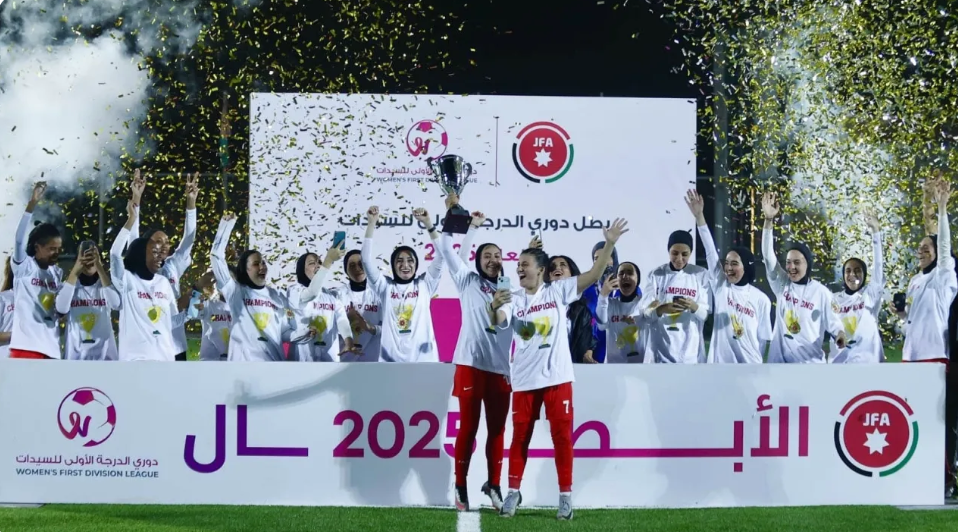 توج فريق النصر بطلا لدوري الدرجة الأولى للسيدات لكرة القدم لموسم 2025 مع صعوده إلى الدوري الأردني للمحترفات للموسم المقبل.وجاء تتويج النصر بعد فوزه مساء أمس الجمعة، على فريق العروبة بنتيجة 6-0 مع اختتام منافسات البطولة.وسلمت عضو مجلس إدارة اتحاد الكرة ورئيس اللجنة النسوية، ستيفاني النبر، فريق...