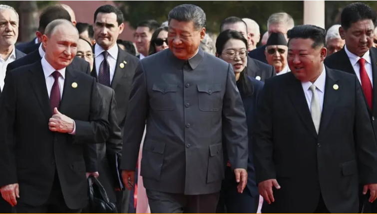توسط شي جينبينغ زعيم كوريا الشمالية كيم جونغ أون ونظيره الروسي فلاديمير بوتين أثناء عرض عسكري ضخم في بكين الأربعاء، في ختام أسبوع حافل باستعراضات الرئيس الصيني وحلفائه الدبلوماسية في مواجهة الغرب.وفي مشاهد غير مسبوقة، صافح شي الزعيمين وتحدّث إليهما أثناء سيرهم معا على السجادة الحمراء عند ساحة...