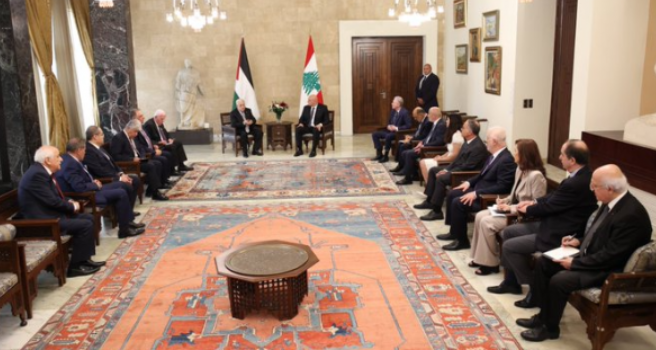 اجتمع الرئيس الفلسطيني محمود عباس، مساء الأربعاء، مع رئيس الجمهورية اللبنانية جوزاف عون.وأقيم استقبال رسمي للرئيس عباس، لدى وصوله إلى القصر الجمهوري، حيث كان في مقدمة مستقبليه الرئيس اللبناني جوزاف عون، حيث عزف النشيدان الوطنيان الفلسطيني واللبناني، قبل ان يستعرض الرئيسان حرس الشرف الذي اصطف...