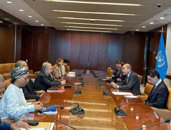 التقى نائب رئيس الوزراء ووزير الخارجية وشؤون المغتربين أيمن الصفدي،مساء الجمعة، الأمين العام للأمم المتحدة أنطونيو غوتيريش، وذلك في مقر المنظمة الأممية بمدينة نيويورك.ويأتي اللقاء في إطار الجهود الأردنية المستمرة للتنسيق مع الأمم المتحدة وبحث آخر التطورات الإقليمية والدولية، وفي مقدمتها تطورات...