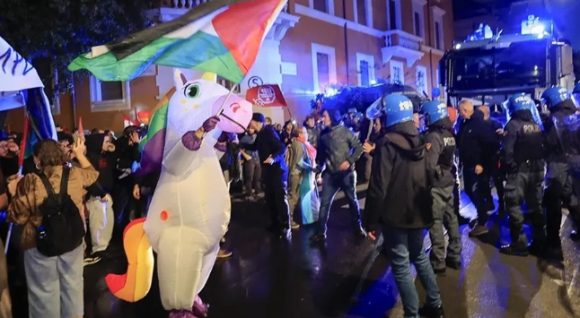 استخدمت الشرطة الإيطالية الهراوات والمياه المضغوطة لقمع مظاهرة داعمة لفلسطين في العاصمة روما.وبحسب مراسل الأناضول، تجمع عدد غفير من الناس، مساء الجمعة، بروما، للمشاركة في المظاهرة للتضامن مع فلسطين، وللتنديد بحرب الإبادة الجماعية التي شنتها إسرائيل في غزة.ورفع المتظاهرون لافتات من قبيل الصهيونية...