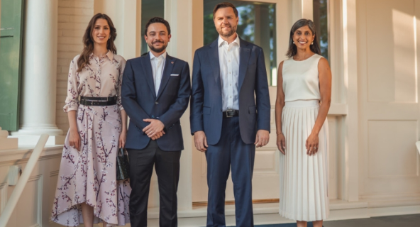 حضر سموّ الأمير الحسين بن عبدﷲ الثاني، ولي العهد، وسمو الأميرة رجوة الحسين، الخميس، مأدبة عشاء أقامها نائب الرئيس الأميركي جيه دي فانس وزوجته أوشا فانس، في واشنطن بمناسبة زيارة سموهما للولايات المتحدة. وجرى بحث علاقات الصداقة المتينة بين الأردن والولايات المتحدة وسبل تطويرها، إضافة إلى مساعي...
