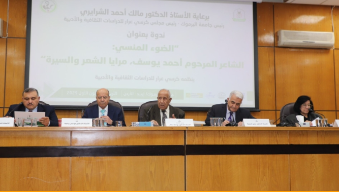 نظم كرسي عرار للدراسات الثقافية والأدبية في جامعة اليرموك، أمس الأربعاء، ندوة الضوء المنسي: الشاعر المرحوم أحمد يوسف، مرايا الشعر والسيرة.وأكدت نائب رئيس الجامعة الدكتورة ربا...