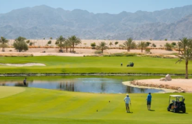 ﺑﺎﻟﺘﺰاﻣﻦ ﻣﻊ إﻧﺠﺎز اﻟﺒﻨﻴﺔ اﻟﺘﺤﺘﻴﺔ، أﻃﻠﻘﺖ أﻳﻠﺔ ﻧﺎدي اﻟﺠﻮﻟﻒ اﻟﺨﺎص ﺑﻬﺎ، ﺟﻮﻫﺮة ﺗﻤﺘﺪ ﻋﲆ ﻣﺴﺎﺣﺔ ﺗﺰﻳﺪ ﻋﻦ 800 أﻟﻒ ﻣﺘﺮ ﻣﺮﺑﻊ ﻣﻦ اﻟﻤﺴﻄﺤﺎت اﻟﺨﻀﺮاء اﻟﻤﺘﻤﻮﺟﺔ، ﺗﺘﺪاﺧﻞ ﺑﺎﻧﺴﺠﺎم ﻣﻊ اﻟﺒﺤﻴﺮات...