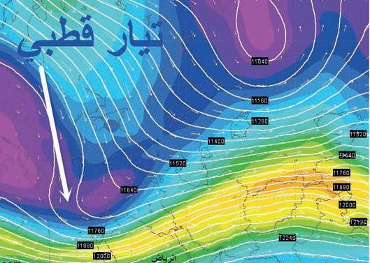 وتأتي هذه التوقعات نتيجة تدني مستوى سماكة الغلاف الجوي فوق مناطق الشرق الأوسط إلى قيم تسمح بوصول الكتل القطبية إلى تلك الدول.