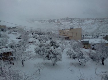 شهدت محافظة عجلون، خصوصا المناطق المرتفعة كرأس منيف ومثلث القاعدة وصخرة وسامتا واشتفينا تساقطاً غزيراً للثلوج منذ مساء أمس، حيث اكتست بالثلوج التي وصلت سماكتها نحو 25سم وطالت المرتفعات المحيطة بالمناطق الشفا غورية.
