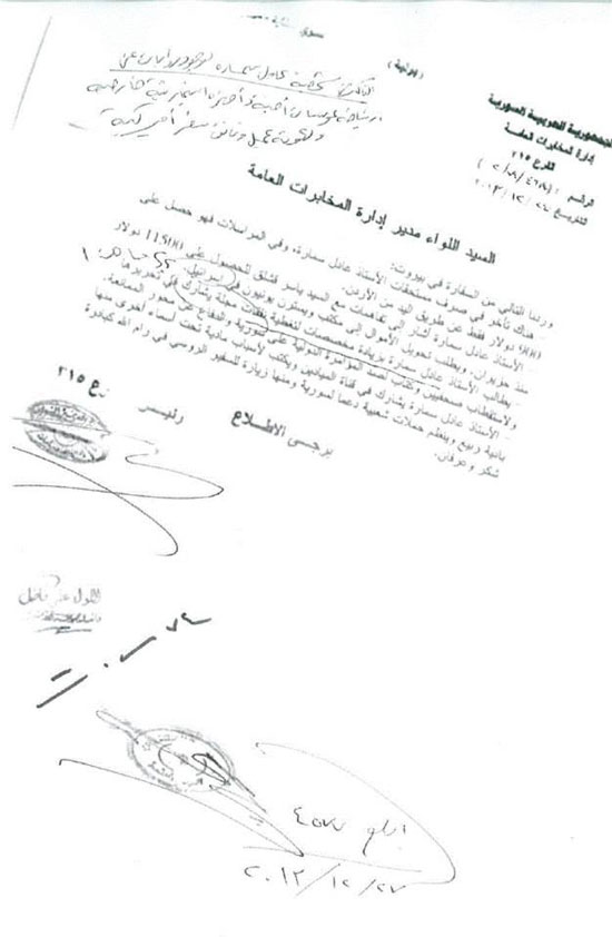 وأوردت صحيفة زمان الوصل السورية أن البرقيات الموقعة بتاريخ كانون الأول من العام الماضي، عكست ارتباكا لدى عناصر الإدارة العامة لمخابرات النظام السوري بعد أسابيع من الضجّة التي واكبت الاتفاق الروسي الأمريكي بخصوص مخزون السلاح الكيماوي لدى النظام السوري.