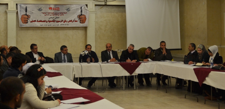 واتفقت كافة القوى والفعاليات الطلابية والنقابية والحزبية والعمالية على إصدار بيان يؤكد على رفض أي محاولات حكومية لرفع الرسوم الجامعية .