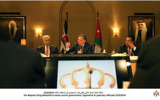 واﺳﺘﻘﺒﻞ اﻟﻤﻠﻚ رﺋﯿﺲ اﻟﻮزراء ﻋﺒﺪ ﷲ اﻟﻨﺴﻮر ورﺋﯿﺲ ﻣﺠﻠﺲ اﻻﻋﯿﺎن ﻋﺒﺪ اﻟﺮؤوف اﻟﺮواﺑﺪة ورﺋﯿﺲ ﻣﺠﻠﺲ اﻟﻨﻮاب ﻋﺎطﻒ اﻟﻄﺮاوﻧﺔ واﻟﻤﻜﺘﺒﯿﻦ اﻟﺪاﺋﻤﯿﻦ ﻓﻲ ﻣﺠﻠﺲ اﻻﻣﺔ ورﺋﯿﺲ اﻟﻤﺠﻠﺲ اﻟﻘﻀﺎﺋﻲ ھﺸﺎم اﻟﺘﻞ ورﺋﯿﺲ اﻟﻤﺤﻜﻤﺔ اﻟﺪﺳﺘﻮرﻳﺔ طﺎھﺮ ﺣﻜﻤﺖ.