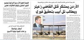 صورة السفير تصدرت الصفحة الاولى في خبر عن جريمة قتل القاضي زعيتر على يد جنود الاحتلال تحت عنوان 'الاردن يستنكر قتل القاضي زعيتر ويطالب تل ابيب بتحقيق فوري'.