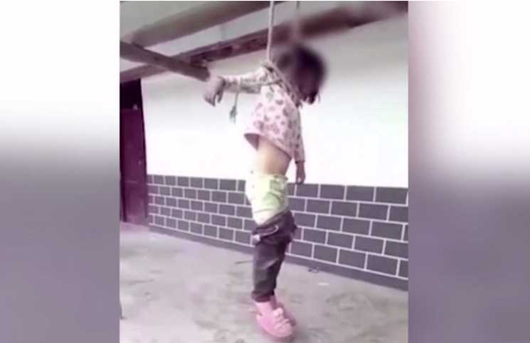 أقدمَ أبٌ صينيّ في مقاطعة جيانغ بمقاطعة سيتشوان بجنوب غرب الصين، على تعليق طفلته التي تبلغ من العمر (8 سنوات)، من عنقها بعد ضربها ضرباً مبرحاً؛ لقيامها بتمزيق أوراق طلاق والديها.