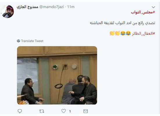 و بعد المشاجرة بلحظات , تصدر وسم #مجلس_النواب , الوسوم الأكثر تداولاً على موقع التواصل الأجتماعي تويتر في الأردن , لتنهال تعليقات و آراء الأردنيين حول ما يحدث من مشاجرات في مجلس النواب الأردني مؤخراً .