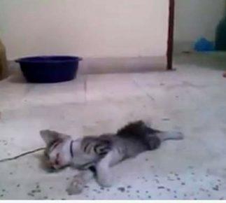 في الفيديو، تظهر فتاتان يقمن بتعذيب قطة صغيرة بعد ربطها بخيط والوقوف عليها، الأمر الذي أدى إلى نفوقها.