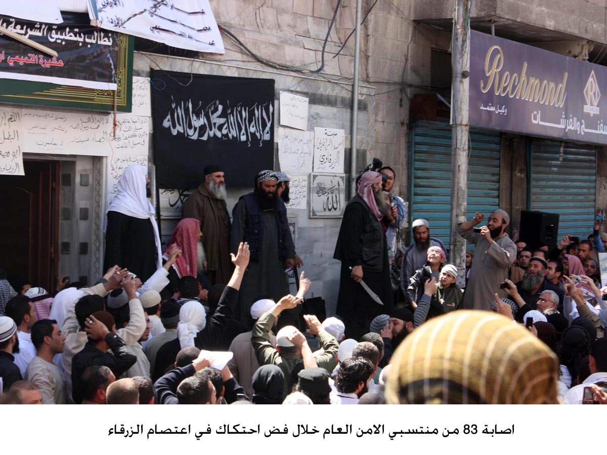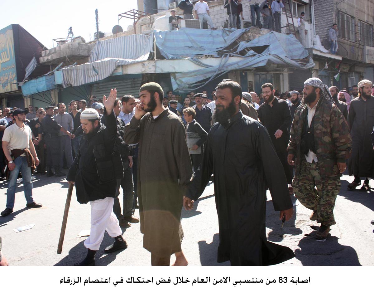 وفي التفاصيل فقد نفذت الجماعة السلفية في الزرقاء اعتصاما بعد صلاة الجمعة امام مسجد عمربن الخطاب الكبير ( وسط الزرقاء ) وباتجاه دوار المعسكرات وذلك للمطالبة بالافراج عن معتقليهم في السجون الاردنية , واحتشد المئات من أنصارهم امام المسجد وسط تواجد أمني كثيف وقوات الدرك حيث القى البعض من قياديي التيار السلفي الكلمات التي أكدت مطالبهم وفي اثناء الاعتصام تدخلت قوات الدرك بالحجز بين المعتصمين من التيار السلفي وبعض الاشخاص الاخرين الذين قاموا بالقاء الحجارة على المعتصمين وارادوا الاشتباك معهم الا ان قوات الدرك حاولت فض الاشتباكات بين الطرفين مستخدمة الغاز المسيل للدموع مما أدى الى وقوع اصابات بين عدد من المواطنين وافراد من الامن نقلوا على اثرها الى مستشفى الامير هاشم العسكري .