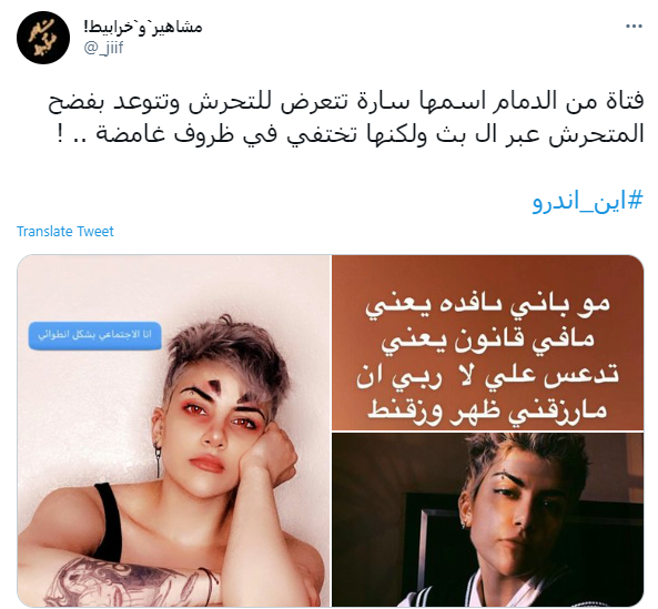 وأشار عدد من المغردين الى أن سارة اختفت عن الأنظار منذ كشفها لتعرضها للتحرش وفضح الجاني.