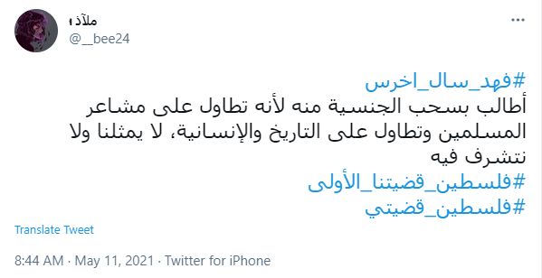 وقال سال في سلسلة من مقاطع الفيديو التي نشرها عبر خاصية "القصص-Stories" على تطبيق "إنستغرام" موضحًا وجهة نظره اتجاه القضية الفلسطينة حتى تصدر اسمه قائمة الأكثر تداولًا على موقع التدوين "تويتر" في المملكة العربية السعودية خلال الساعات الأخيرة الماضية.