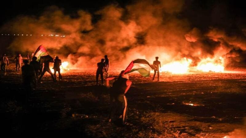 وحمل عشرات الشبّان الفلسطينيين المشاعل، واضرموا النار في الإطارات المطاطية، وألقوا قنابل صوتية قرب السياج الفاصل بين قطاع غزة وإسرائيل، على الحدود الشرقية لمخيم البريج وسط قطاع غزة.
