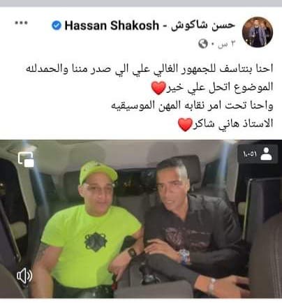 وكانت نقابة الموسيقين، قد قررت وقف حسن شاكوش عن الغناء لأجل غير مسمى، علي خلفية التراشق بالألفاظ بينه وبين المطرب رضا البحراوي، وتوجيه السباب له بألفاظ نابية أثناء إحدى حفلاته.