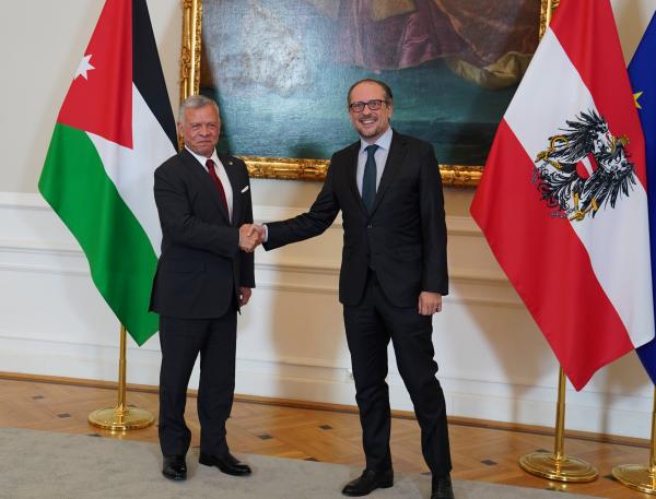 بحث جلالة الملك عبدالله الثاني مع المستشار النمساوي ألكسندر شالينبرغ، اليوم الاثنين، سبل تطوير العلاقات الثنائية في مختلف المجالات، وتعزيز التعاون بينهما.