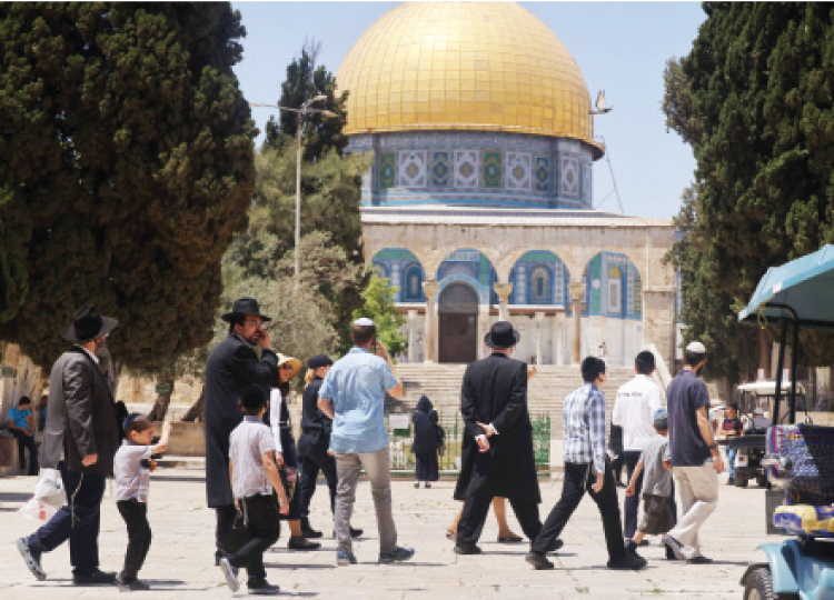 وقال شهود عيان لمراسل وكالة الانباء الاردنية (بترا) في رام الله، ان الاقتحامات نفذت من جهة باب المغاربة بحراسة مشددة من شرطة الاحتلال الإسرائيلي الخاصة المدججة بالسلاح، موضحين أن عشرات المستوطنين اقتحموا الأقصى على شكل مجموعات وأدوا طقوسا تلمودية استفزازية وقاموا بجولات مشبوهة في باحاته وسط التصدي لهم بالطرد وهتافات التكبير الاحتجاجية من قبل المصلين والمرابطين وحراس المسجد.