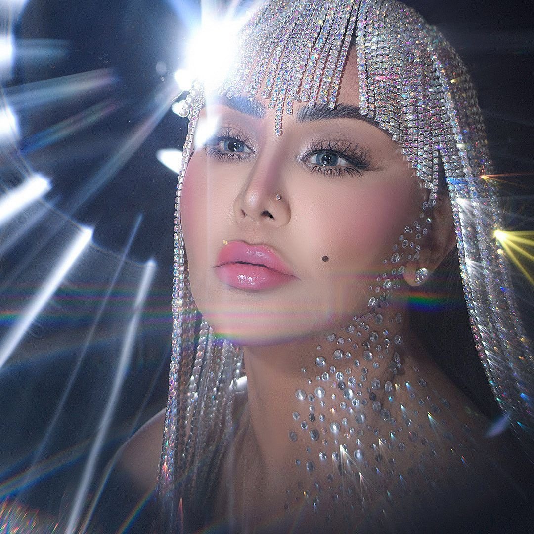 وتداول رواد مواقع التواصل الاجتماعي صوراً لأحلام ظهرت فيها بشعر ووجه ورقبه مرصعين بالمجوهرات والالماس.
