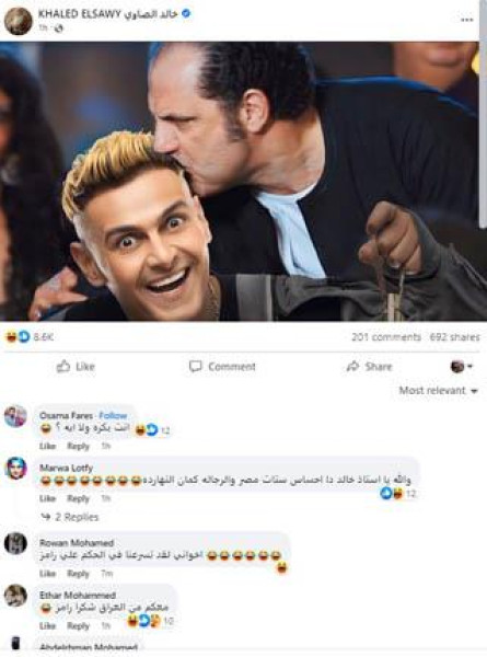 وتساءل البعض عن ما إذا كان خالد الصاوي هو الضحية الرابعة بالحلقة القادمة من البرنامج، وجاءت التعليقات كالتالي "انت بكرة ولا إيه"، "شكلك مبتحبش الصوت الصيفي". وفق (مصراوي)