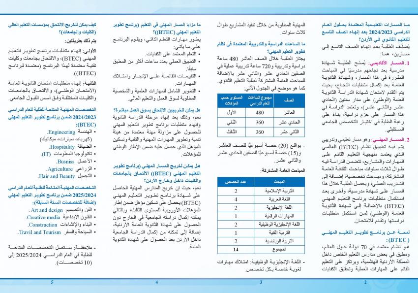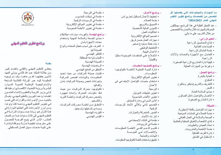 حيث اشتملت النشرة على التخصصات المهنية الستة الجديدة والتي سيتم قبول الطلبة فيها للعام الدراسي ٢٠٢٣/٢٠٢٤ وكذلك التخصصات للعام الذي يليه ٢٠٢٤/٢٠٢٥.