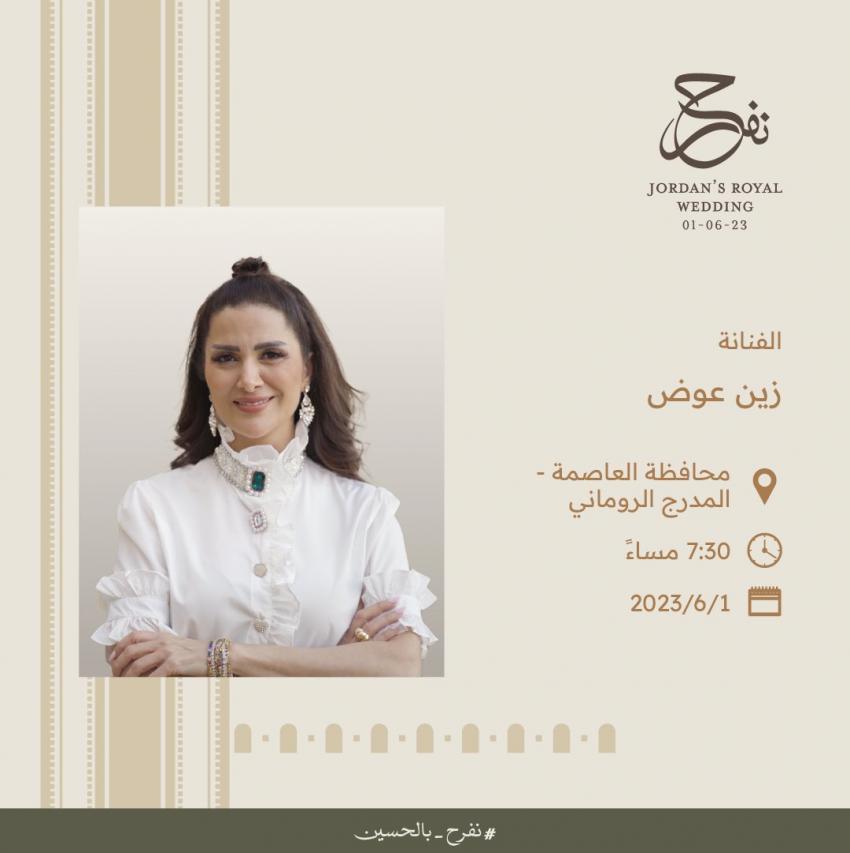 وبحسب الوزارة، فإن الحفل الفني للفنانة زين عوض في المدرج الروماني عند الساعة السابعة والنصف، بينما سيكون الحفل الفني للفنان حسين السلمان في المدرج الروماني أيضا عند الساعة التاسعة مساءً.