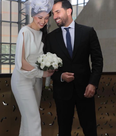 نشرت الفنانة الشابة ماريتا الحلاني ابنة النجم عاصي الحلاني فيديو وصوراً على حسابها في إنستغرام، شاركت عبرها فرحتها بزواجها من مدير الانتاج كميل أبي خليل مع محبيها وجمهورها. العروس ماريتا الحلاني تألقت بإطلالة بيضاء ناعمة بجمبسوت من الحرير الأبيض من تصميم إيلي صعب. وتميز بياقة قارب مع أكمام طويلة واسعة ومشقوقة من الجانبين، وزينت شعرها بإكسسوار من الأورغنزا من تصميم Centimes Bourgeois Headpieces. وقد تولت شقيقتها دانا الحلاني تنسيق كل التفاصيل المتعلقة بإطلالتها الخاصة بيوم الزفاف، فنشرت دار إكسسوارات الشعر شكراً خاصاً لها على حسابها على انستغرام. كما حملت العروس باقة ورد بيضاء منمقة من تصميم الخبير روني باسيل