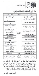 أنذرت أمانة عمان الكبرى، 14 عامل وطن وكهربائي تمديدات، بالعودة إلى عملهم خلال 3 أيام، وإلا سيتم فصلهم نتيجة تغيبهم عن العمل لمدة تزيد عن 10 أيام.