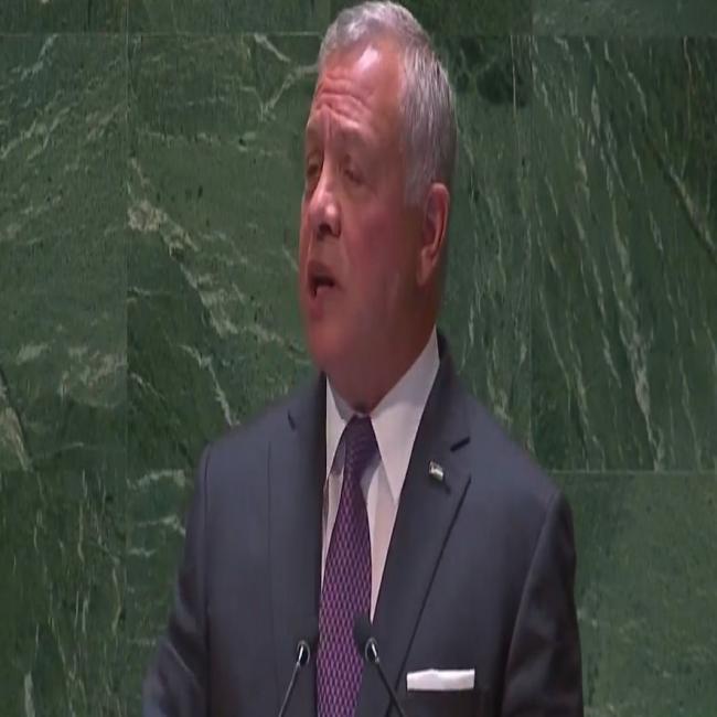 وأكد مجلس النواب أن جلالة الملك قدم أمام الجمعية العامة للأمم المتحدة، رؤية شاملة لمواجهة التحديات الإقليمية والدولية تنطلق من بعد إنساني يتجسد في أهمية الإلتفات لمعاناة اللاجئين وخطر انعدام الأمن الغذائي والتغير المناخي وآثار النزاعات في شتى مناطق العالم ، كما أن تلك الرؤية عبرت بوضوح عن ثابت أردني تجاه القضية الفلسطينية إذ لن تنعم المنطقة بالأمن والاستقرار دون إيجاد حل شامل وعادل للقضية الفلسطينية يضمن للأشقاء الفلسطينيين إقامة دولتهم المستقلة.