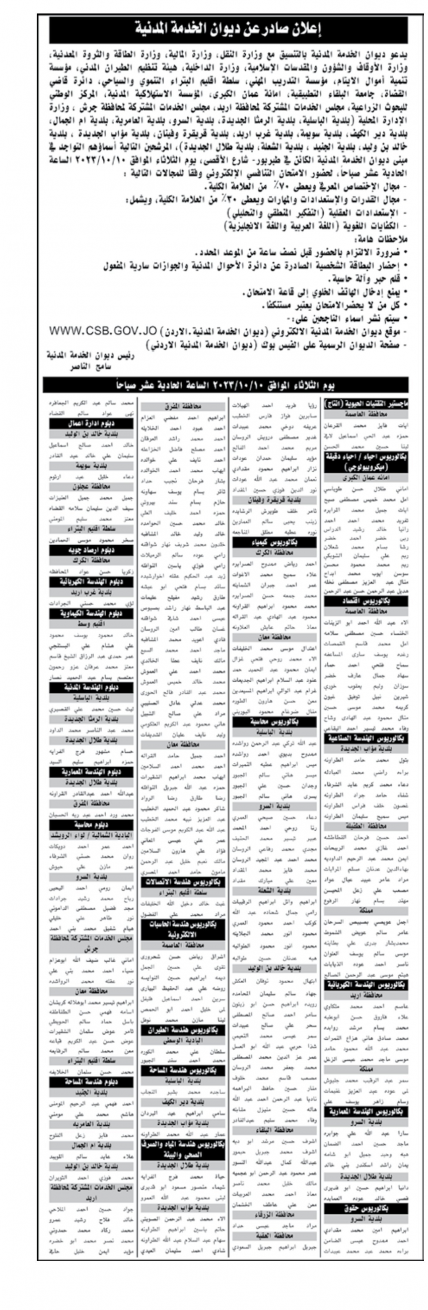 يدعو ديوان الخدمة المدنية بالتنسيق مع 17 وزارة وجهة حكومية، مئات المرشحين للامتحان التنافسي، يوم الثلاثاء المقبل.