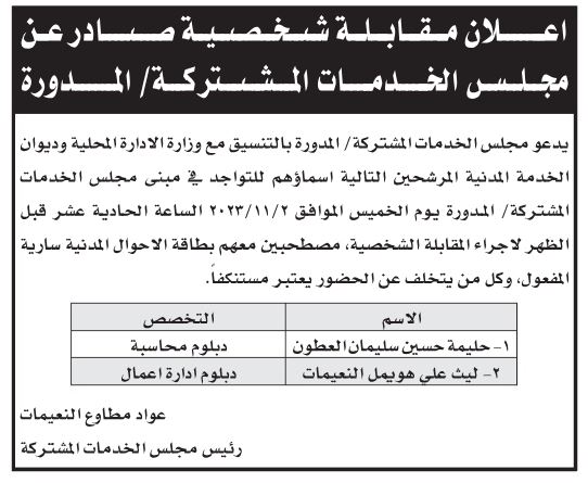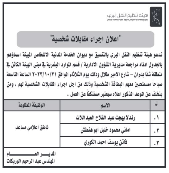 كما دعت عددا من المرشحين لإجراء المقابلات الشخصية.