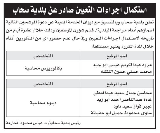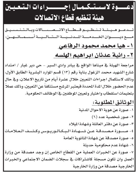 بالأسماء .. دوائر حكومية تدعو مرشحين لاستكمال إجراءات التعيين