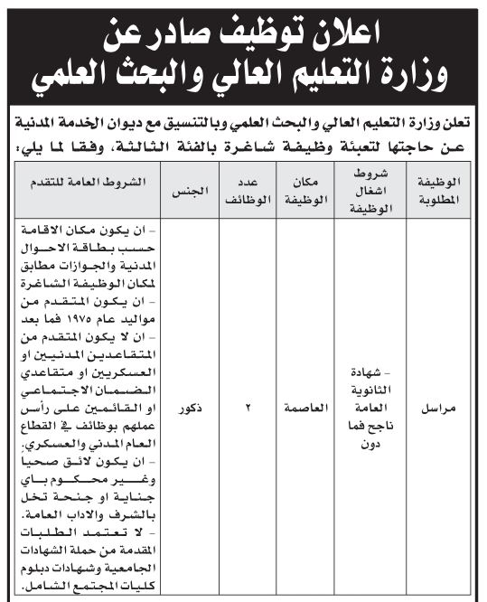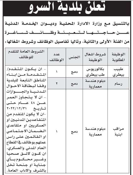 أعلنت عدداً من الوزارات والمؤسسات الحكومية والبلديات، اليوم الأحد، بالتنسيق مع ديوان الخدمة المدنية، عن حاجتها لتعبئة وظائف شاغرة.