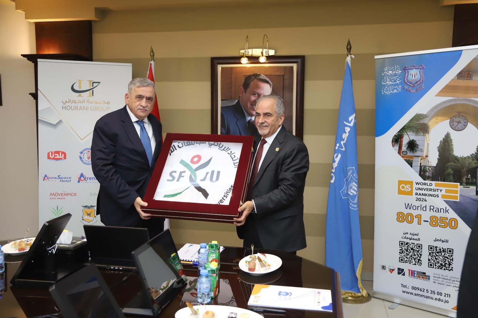 تسلّمت الجامعة الأردنية اليوم راية رئاسة الاتحاد الرياضي للجامعات الأردنية من جامعة عمان الأهلية بعد توليها للرئاسة في الأعوام الأربعة الأخيرة.