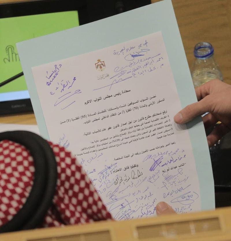 يذكر أن الفقرة الأولى من المادة (95) من الدستور تنص على أنه "1. يجوز لعشرة أو أكثر من أعضاء أي من مجلسي الأعيان والنواب أن يقترحوا القوانين ويحال كل إقتراح على اللجنة المختصة فـي المجلس لإبداء الرأي فإذا رأى المجلس قبول الإقتراح أحاله على الحكومة لوضعه فـي صيغة مشروع قانون وتقديمه للمجلس فـي الدورة نفسها أو فـي الدورة التي تليها".